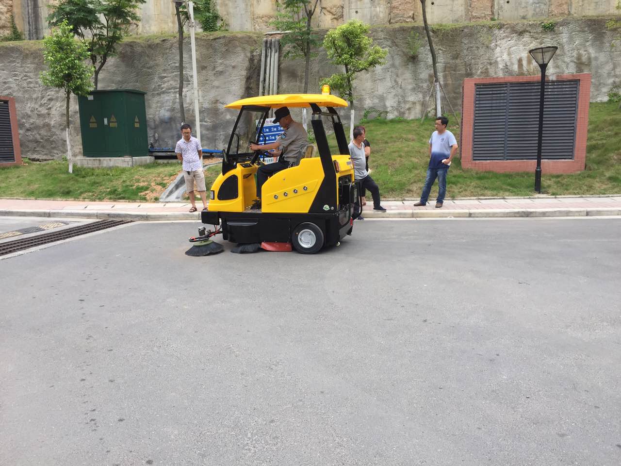 電動掃地車廣泛適用于市政環衛、公園街道、住宅小區等,很符合物業公司的場地使用要求,掃地車加大的地盤設計,平板過濾器,內置強力的控塵系統,吸附能力強,大小垃圾以及灰塵都能輕易清掃干凈。輪胎是實心輪胎,堅固耐用,前輪雙彈簧減震,輕巧實用,可適應各種道路狀況。高潔掃地車運行靈活,操作方便,容易上手。