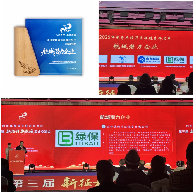 成都綠保清潔設備有限公司憑借其在環保清潔設備領域的持續創新、市場拓展潛力及對區域綠色發展的突出貢獻,榮獲 “航城潛力企業獎” 。該獎項旨在表彰具備高成長性、技術領先性和產業帶動力的優秀企業,標志著綠保清潔設備在技術創新與可持續發展道路上邁入新階段。