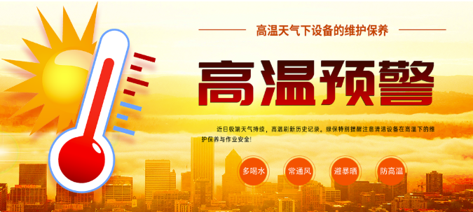 近日高溫異常,多地已啟動高溫黃色或紅色預警。綠保在此特別提醒高溫天氣請注意人員與設備安全,做好防暑降溫工作!